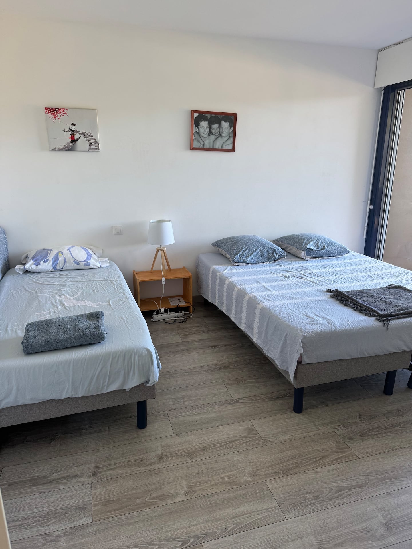 Appartement cosy pour 4 personnes avec une terrasse ensoleillée, piscine & solarium en Roof-top. À 10mn des plages et du centre, profitez d’un logement tout confort avec parking privé, gardien de nuit et équipements modernes. Chambre séparée + salon avec canapé-lit, TV, Wifi, Clim, linge fourni. Cuisine entièrement équipée (Nespresso, lave-vaisselle et lave linge). Idéal pour un séjour pratique et relax sur la Côte d’Azur 🌴